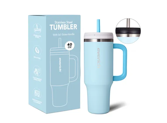This stainless steel bottle offers long-lasting temperature control, keeping drinks cold for up to 24 hours and hot for 12 hours. The BPA-free, leak-proof lid ensures safe and secure use, while the straw lid makes hydration effortless. Its durable powder-coated finish provides a comfortable grip and enhanced resistance to wear. With a sturdy carrying handle and cup-holder-friendly design, this bottle is ideal for travel, workouts, and everyday use.